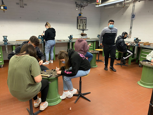 Auch die Werkstatt-Tage im Beruflichen Trainingszentrum der Handwerkskammer Heilbronn-Franken konnten unter ebenfalls strengem Hygienekonzept durchgeführt werden. So konnten über dreißig Schüler der Klassenstufe 9 je zweieinhalb Tage praktische Erfahrungen in der Elektro-Werkstatt, der Holz-Werkstatt, der Metall-Werkstatt und der Medien-Werkstatt sammeln, bei denen sie von Handwerks-Meistern und Dozenten fachkundig angeleitet wurden. Auch die Rückmeldegespräche zu den in den Werkstätten beobachteten fachlichen und personalen Stärken und der Auswertung des Berufswahltests „geva-Test“ konnten mit dem Leiter des BTZ der Handwerkskammer Heilbronn-Franken, Herrn Johannes Richter, unter besonderen Hygienevorkehrungen an der Verbundschule Bad Rappenau stattfinden. Pandemie macht eben auch erfinderisch.