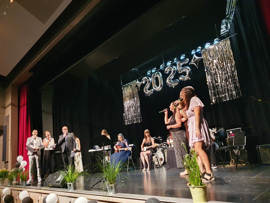 Die Präsentation der Babyfotos der Absolventinnen und Absolventen, sorgten zunächst für viel Gelächter und Freude – bevor Loresa Sadiku und Alina Bekteshi mit einem gefühlvollen Klavierstück eine ruhigere Stimmung erzeugten. Die beiden führten anschließend auch als Moderatorinnen charmant durch das weitere Programm.