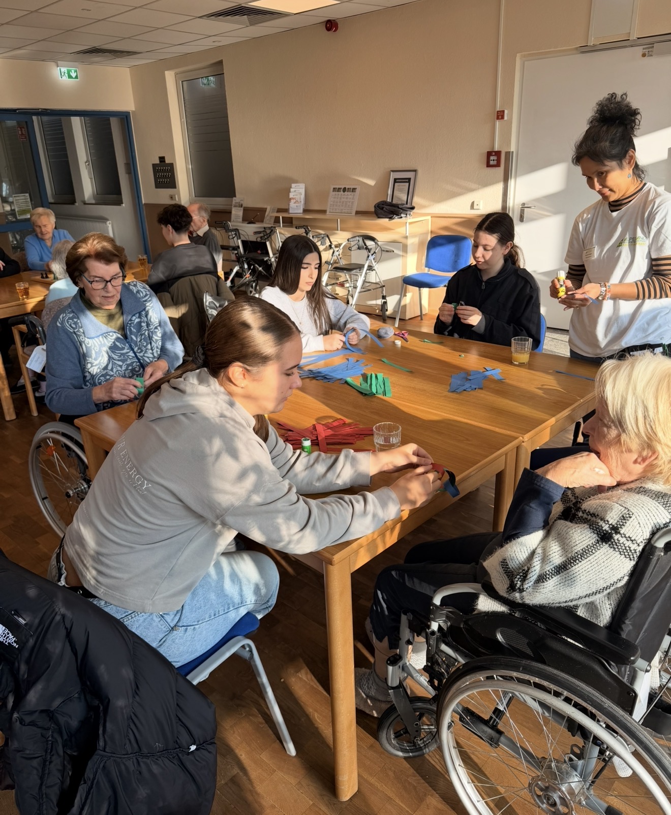 Dazu gehörten unter anderem gemeinsame Spiele, Gespräche mit den Bewohnerinnen und Bewohnern sowie kreative Aktivitäten. Mit viel Engagement und Einfühlungsvermögen gingen die Schülerinnen und Schüler auf die Seniorinnen und Senioren zu und sorgten für eine offene und herzliche Atmosphäre.