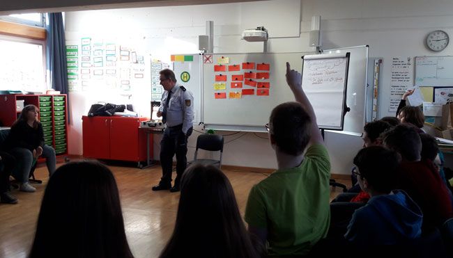 Das Weiterschicken von Bildern und Medien in den sozialen Netzwerken wurde gemeinsam hinterfragt und diskutiert. In kleinen Rollenspielen und einer kurzen Gruppenphase erarbeiteten die Schülerinnen und Schüler Methoden und Möglichkeiten, sich aktiv gegen Mobbing zu schützen und erlernten Strategien und Vorgehensweisen um sich und Anderen im konkreten Fall helfen zu können. Internetadressen zum Weiterrecherchieren standen ebenso auf dem Stundenprogramm dieses informativen und lehrreichen Vormittags, wie alltagstaugliche und praktische Tipps zum generieren eines sicheren Passwortes.