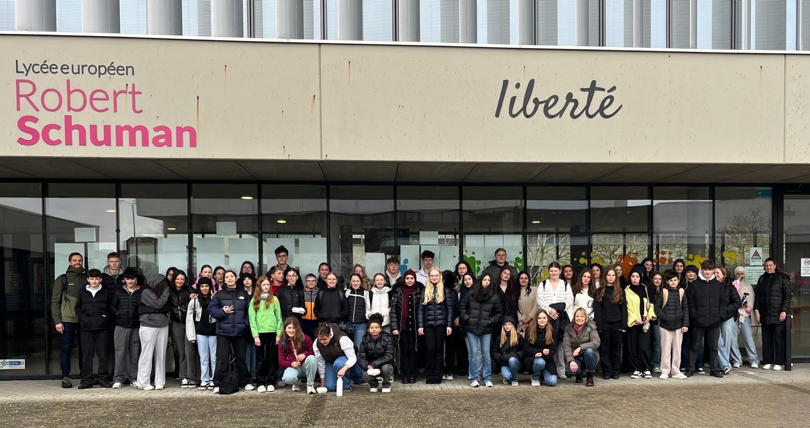Am 25. März 2026 fuhren 60 Schüler:innen der Verbundschule Bad Rappenau mit einem Reisebus um 8 Uhr morgens nach Haguenau im Elsass. Die Französischlernenden der Jahrgangsstufen 7 bis 9 des Realschul- und Gemeinschaftsschulzweigs wurden dabei von drei Französischlehrkräften begleitet. Nach der Strasbourg- und Wissembourg-Fahrt in den Jahren 2024 und 2025 war es der dritte Kurztrip über den Rhein ins französische Nachbarland.