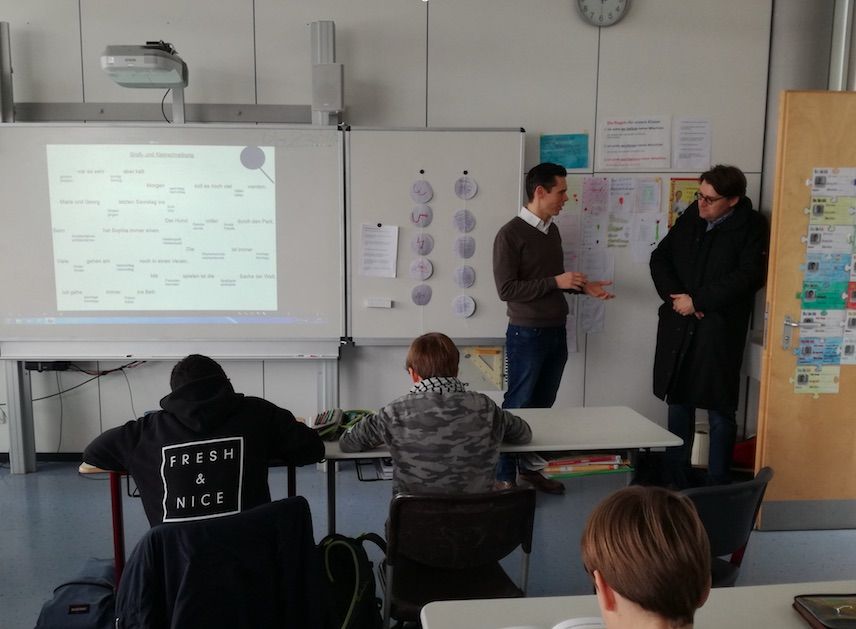 In dieser Woche konnte die Verbundschule Bad Rappenau den Landtagsabgeordneten Daniel Renkonen der Landtagsfraktion der Grünen als Gast begrüßen. Herr Renkonen, der stellvertretendes Mitglied im Ausschuss für Kultus, Jugend und Sport ist, informierte sich über das pädagogische Konzept und die Unterrichtssituation der Bad Rappenauer Schule. Dabei lernte er die Arbeitsweise im Fremdsprachenunterricht heterogener Lerngruppen in den Klassenstufen 5 und 8 des Gemeinschaftsschulzweigs kennen.