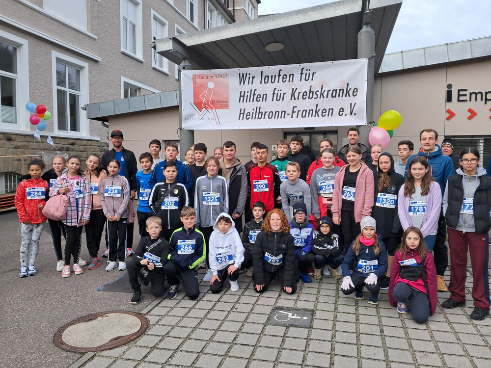 Bei nahezu perfektem Laufwetter fanden sich am Samstagvormittag des 12.10.24 um Punkt zehn Uhr ganze 950 Läuferinnen und Läufer sowie Walkerinnen und Walker vor den Toren der Vulpiusklinik Bad Rappenau ein, um gemeinsam sowohl zum Wohle der eigenen Gesundheit als auch für den Verein „Hilfen für Krebskranke Heilbronn-Franken e.V.“ im direkt angrenzenden Stadtwald entweder eine Runde (6km) oder zwei Runden (12km) zu absolvieren. Auch die Verbundschule Bad Rappenau trug hierbei mit 87 erfolgreichen Finishs wieder einen Großteil zu einem rundum gelungenen sportlichen Vormittag bei.
