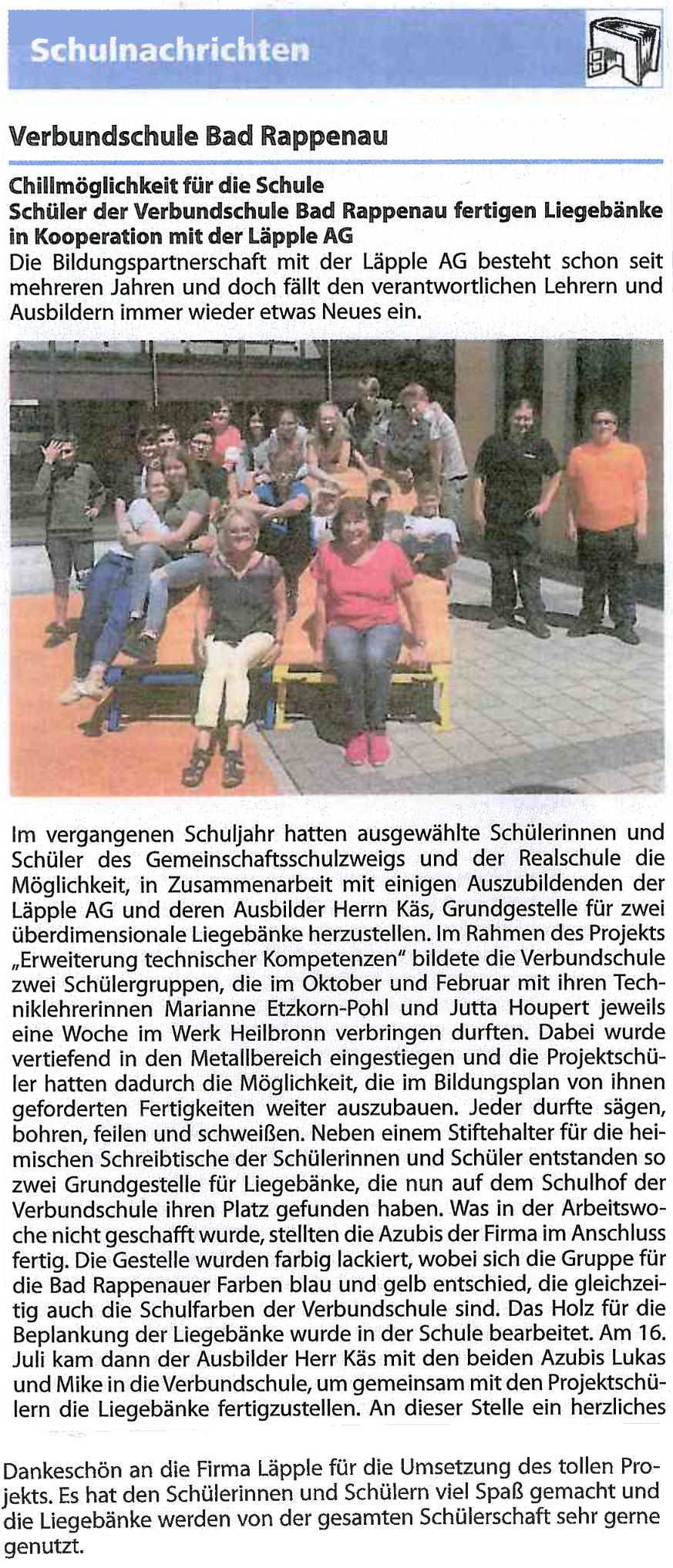 05.10.2018 Chillmöglichkeit für die Schule / Läppleprojekt