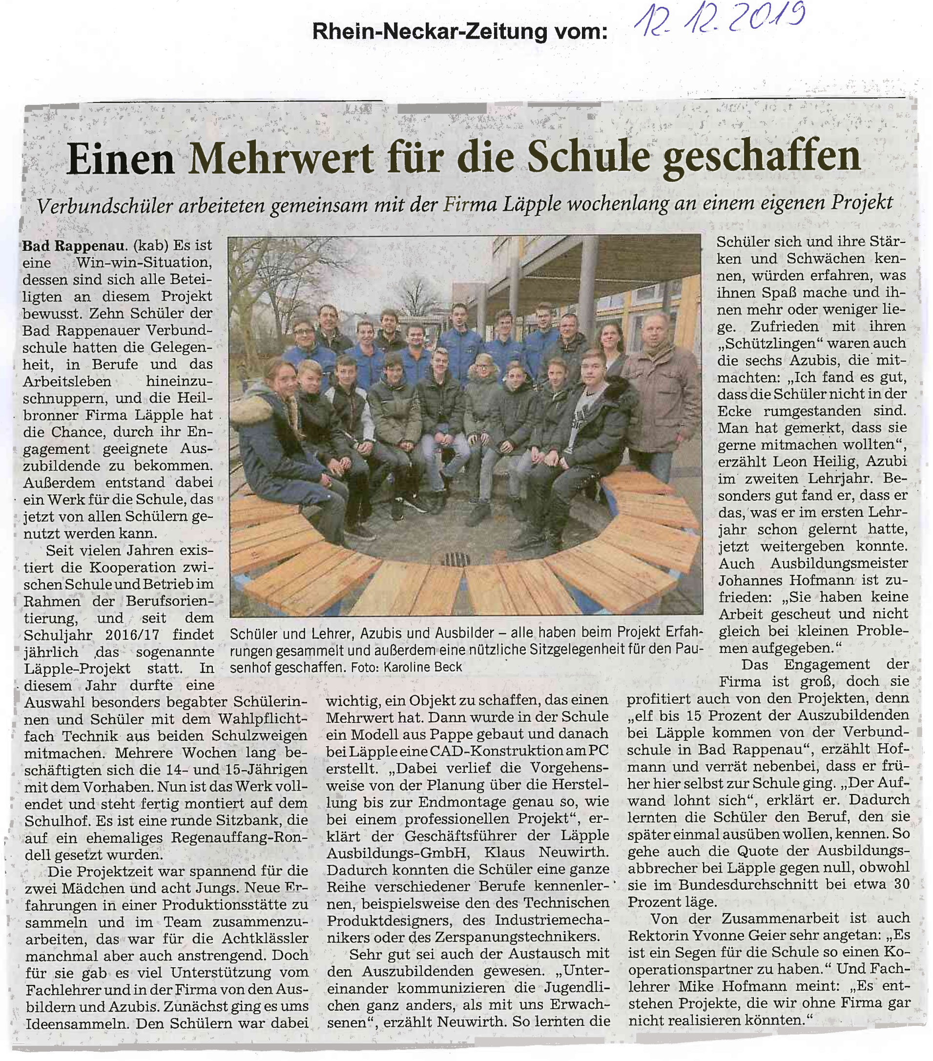12.12.2019 Einen Mehrwert für die Schule geschaffen / Läpple-Projekt